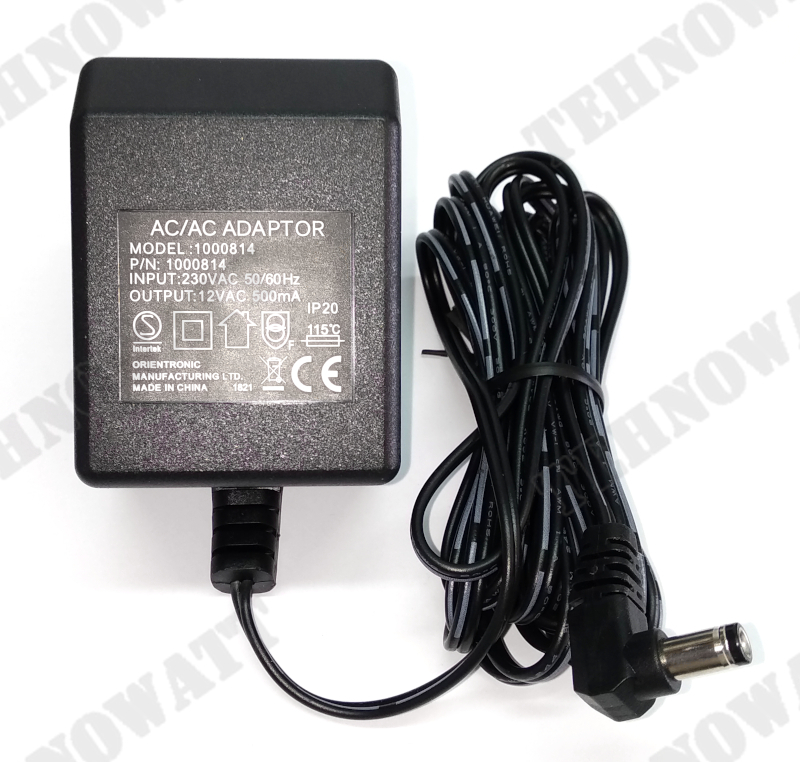 Proizvođač: ORIENTRONIC Model: 1000814 Struja, ulaz (Input): 230VAC 50/60Hz Struja, izlaz (Output): 12VAC 500mA Dužina kabla: 3m Promjer priključka: Ø 5,5mm (M)